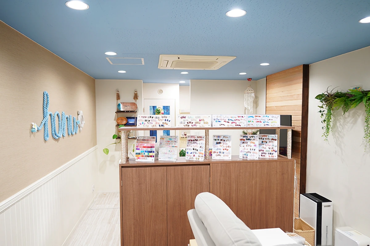 Nailsalon HONUは2024年12月に内外装をリニューアルし、リラックスできる空間をさらに強化しました。1席だった施術スペースを2席に拡大し、待合スペースも確保。青と白を基調とした内装は海辺のリゾートをイメージしており、日常を忘れられる特別な空間での施術をご提供します。